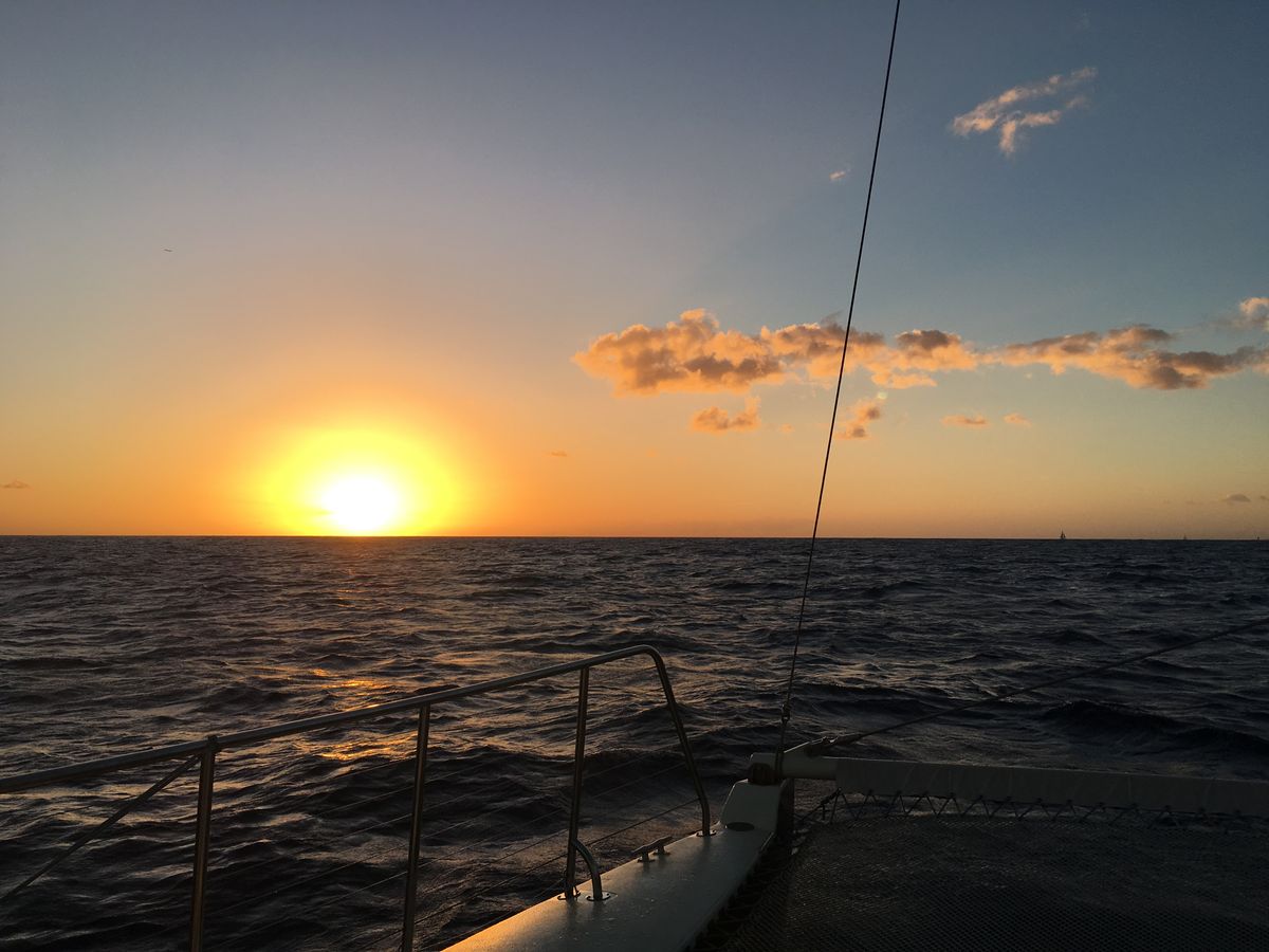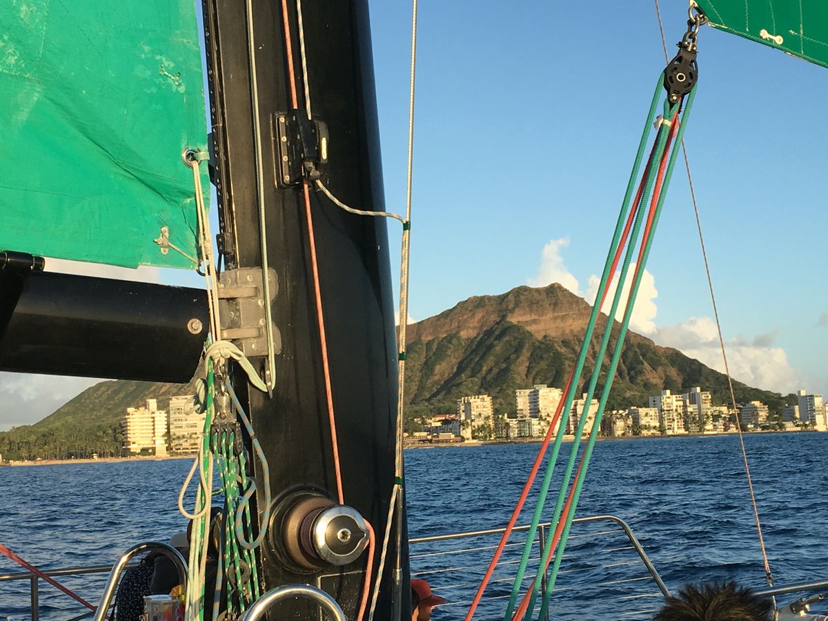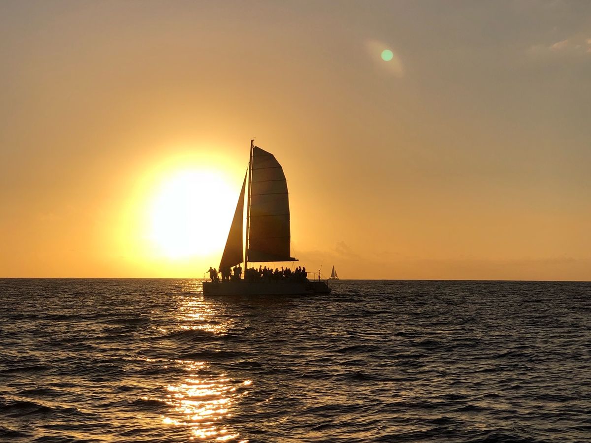 !ホノルルに来る度に毎回サンセットクルーズをする様になりましたが、決まって乗るのはマイタイカタマランになりました。ディナー付きの大型船から他のカタマランなど色々乗ってみましたが、当日の風にもよりますが船のスピード感も有り、一番リアルにサンセットが楽しめるのでは無いでしょうか? ワイキキ沖なので余り船も揺れませんし楽しめると思います。但しスタッフやクルーはほぼ英語オンリーですね、特に話せなくても問題は無いと思いますが。