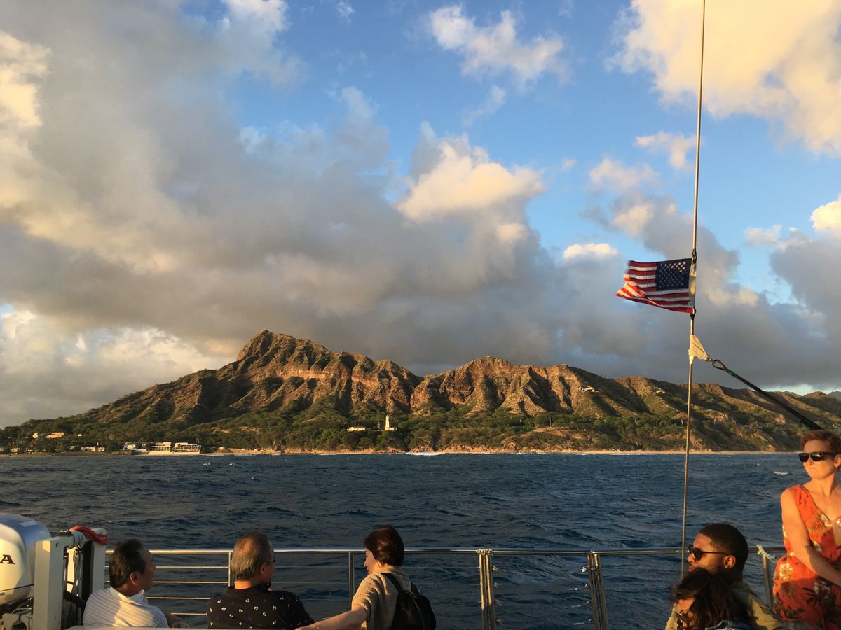 日が落ちる前に、青い海を進むのも、ダイヤモンドヘッドを見るのも楽しく、サンセットは言うまでもなく綺麗でした。
