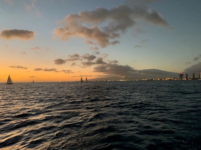 夕焼け~夜景とワイキキの町の表情や、水平線に沈む太陽を視界にビル、たくさんのヨットなどの眺めがステキでした。また、この日は風が強く、波は冬場としては高めでしたが、音楽と波にのり、酔うことなく、最高のアクティビティとなりました。アメリカ人はハイテンションでした。時期柄?日本人は少なかったです。