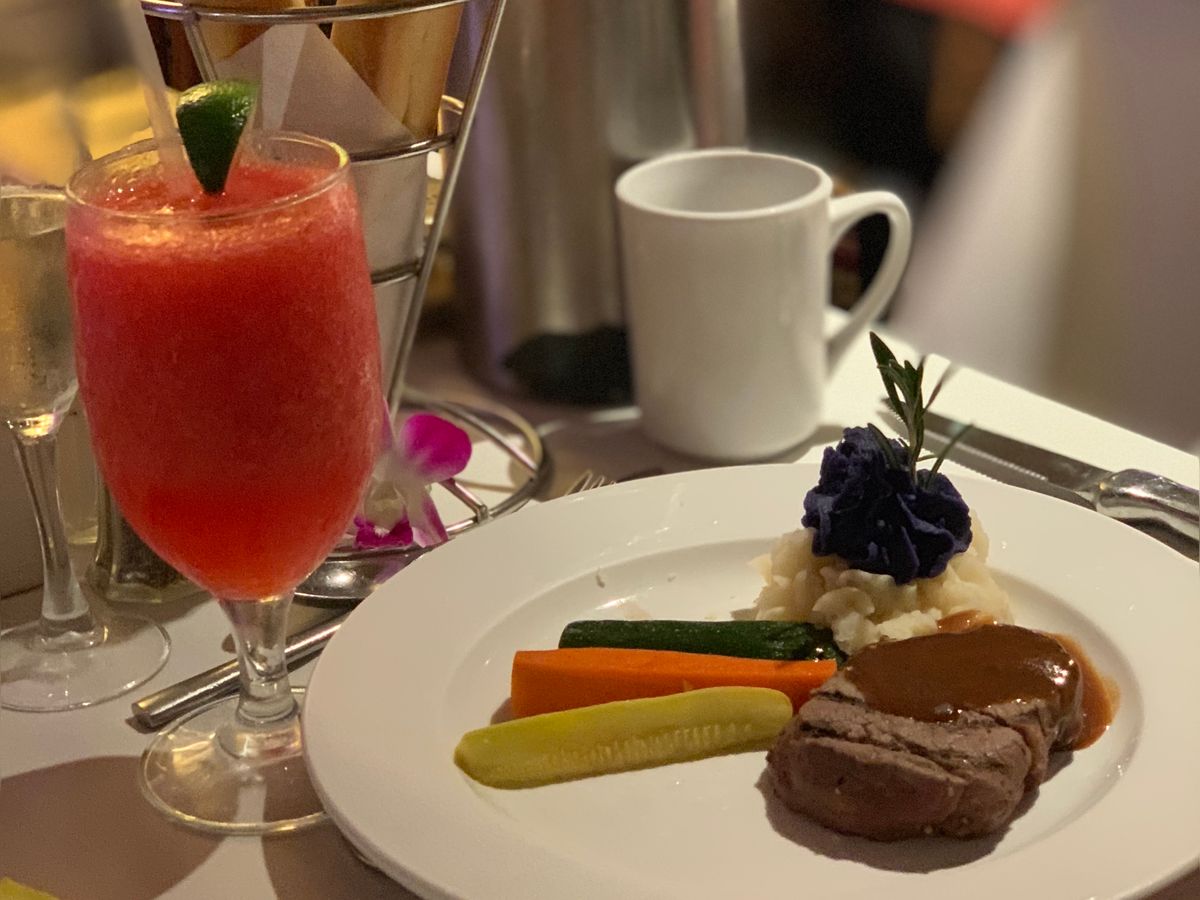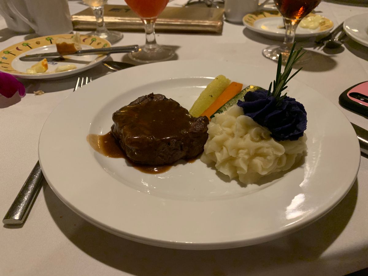 ステーキ&ロブスターのコースでした。ステーキもロブスターもとても美味しくて満足でした。金曜の夜だったのですが、なんと途中から雨に。どうなるかと思いましたが、ヒルトンホテルの花火の打ち上げは予定通りあり、良かったです。 ショーもとても楽しく、最後に参加者もいっしょに踊りかなり盛り上がりました。スタッフの皆さんも笑顔が素敵で素敵なクルーズでした!