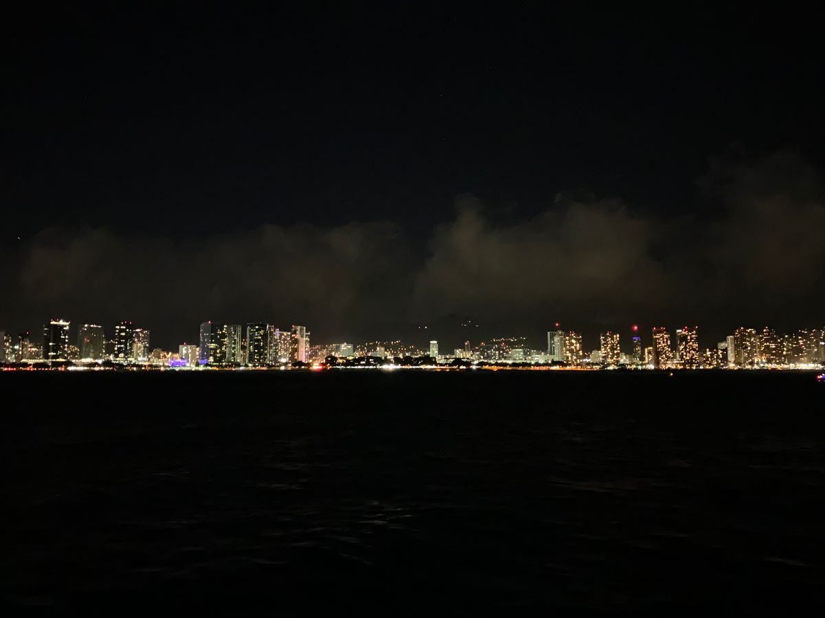 カニも食べ放題でステーキもあり船からのハワイの夜景も綺麗でとてもよかったです。いい船上クルーズでした。写真もカメラマンが来て撮影してくれてとてもいい思い出になりました。