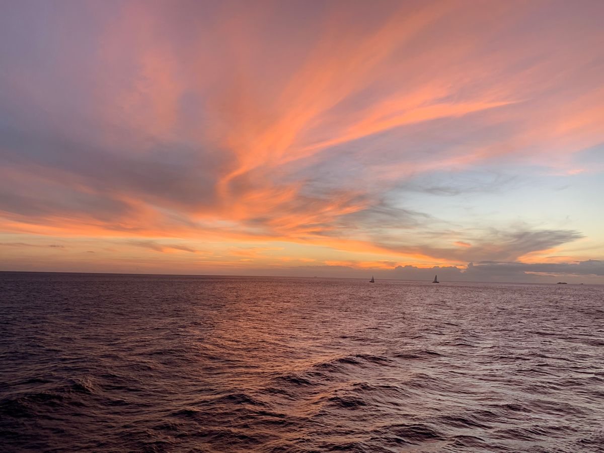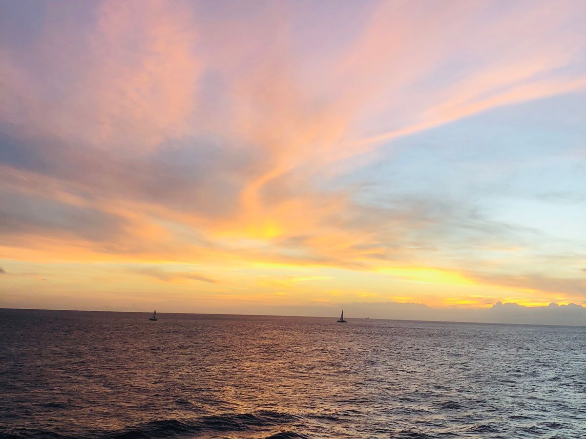 実際、これは彼氏と一緒にやるのは二回目でした。私たちは2018年2月にクルーズをしました。素晴らしい時間を過ごし、クルーはいつも通り素晴らしかったです。彼らはとても親切でエネルギッシュでした。みんなが楽しい時間を過ごせるように気を配ってくれました。本当に感謝しています!特に夕日が大好きで、前の方に座っているときは最高でした。異なる角度でたくさんの写真も撮ることができました。提供されたカクテルも素晴らしい味でした!この美しいサンセットクルーズを体験したい方には、ぜひお勧めします。将来参加する方は、寒くなることがあるので、ジャケットやセーターを持参することをお勧めします。楽しんでください!