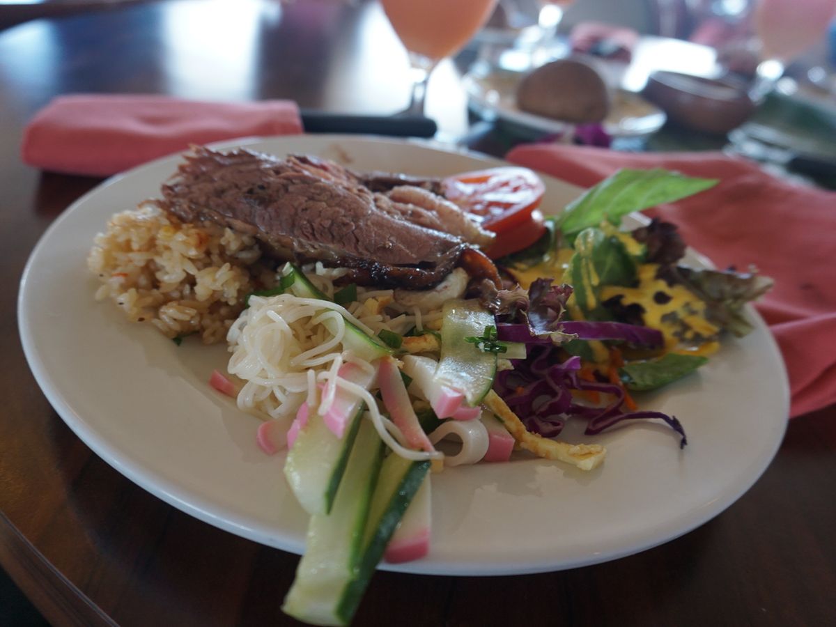食事は、前菜のみブュッフェ式で、他はウェイトレスさんが持ってきてくれます。そのウェイトレスさん方が姉がハワイの為に決めてきたネイルに反応してくれたお陰で、和やかな空気での食事となりました。