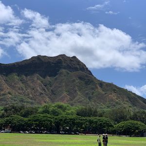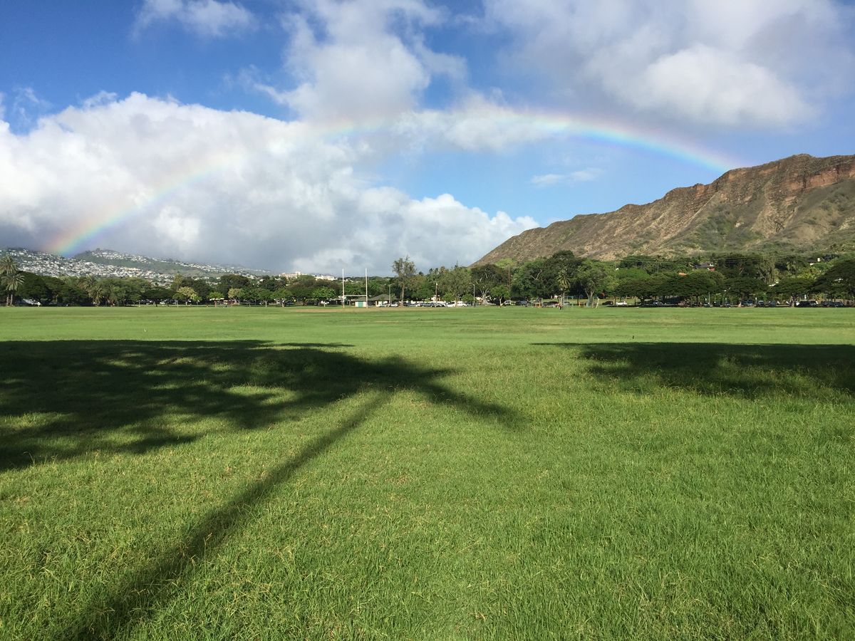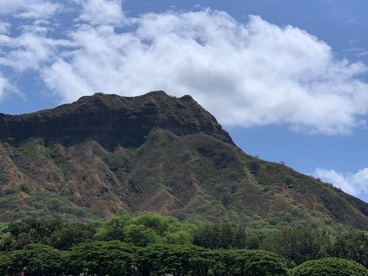 海の青と芝生の緑とダイアモンドヘッドが背景と思い出に残る写真を撮っていただけて、とても満足です。