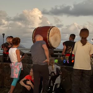 真っ暗な中、スマホの電灯でひたすら上を目指して歩きました。最先端は場所を取るのが困難なくらい大勢の人でした。この日はハワイ式の日の出の儀式と日本の太鼓パフォーマンスがあり、日の出の直前は厳かな雰囲気に。
