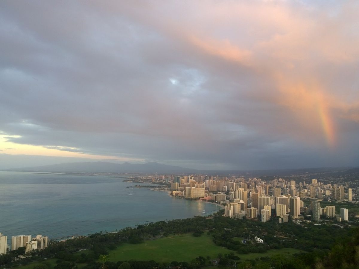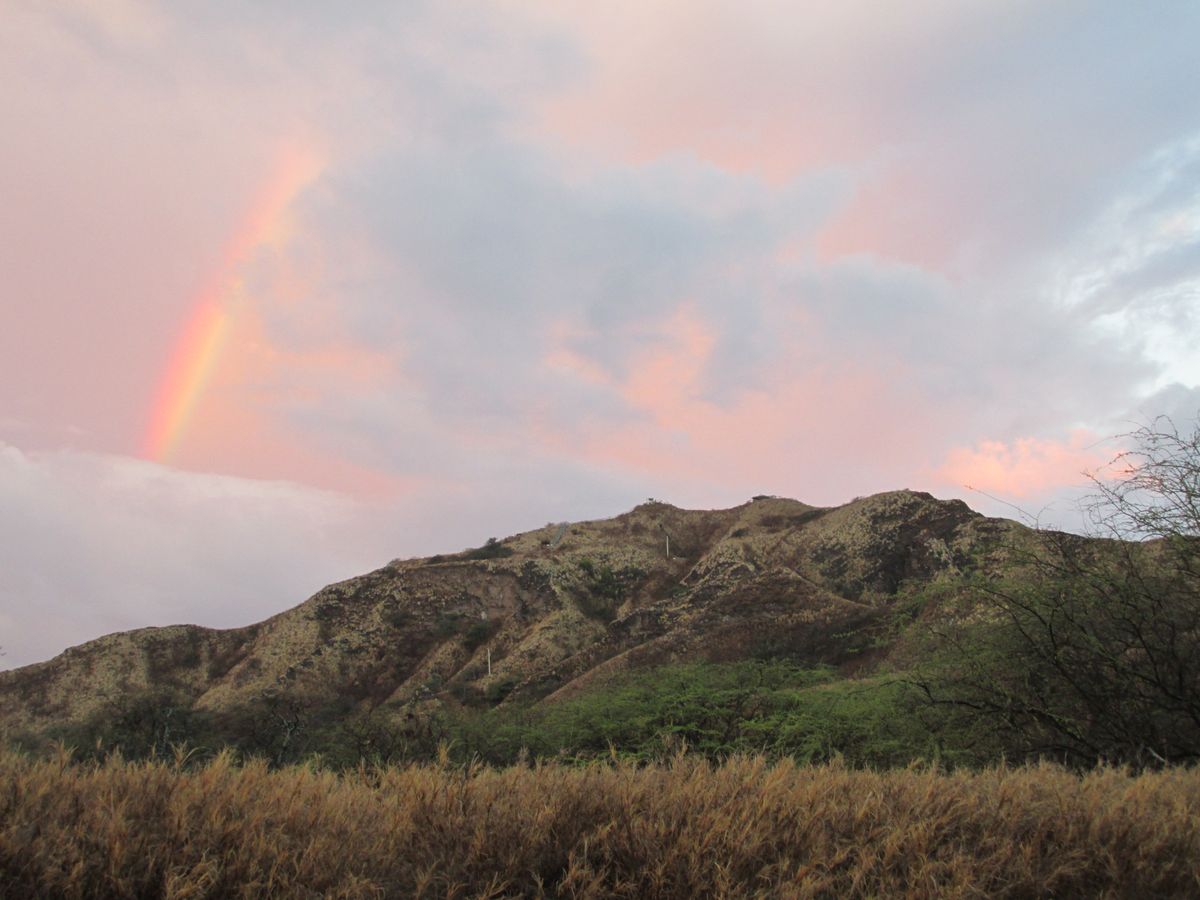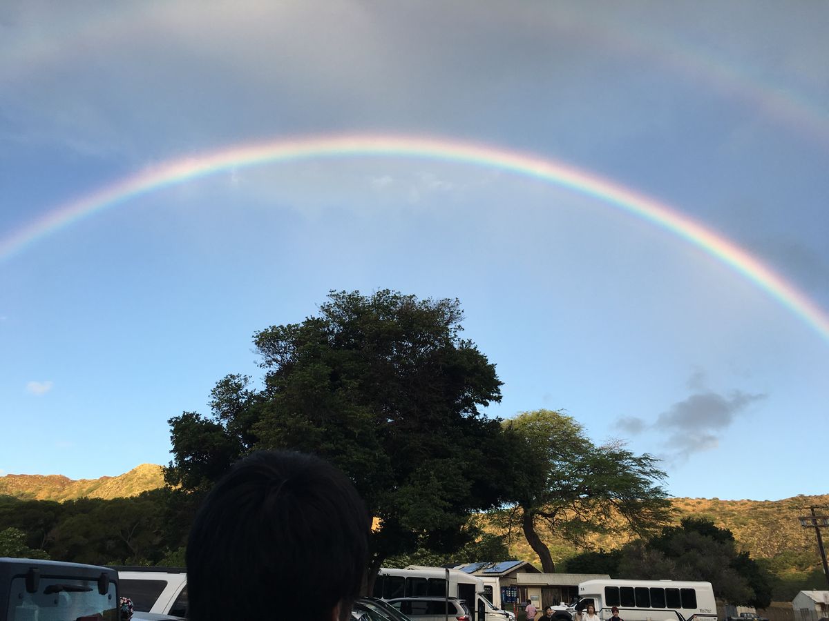 ダイヤモンドヘッドの登山は良かったです。頂上で日の出見て、反対側には虹が出ていて、本当に美しかったです。