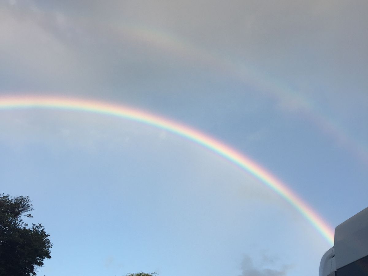 バスに乗る直前、小雨のおかげでとてもきれいな虹が出ていました!