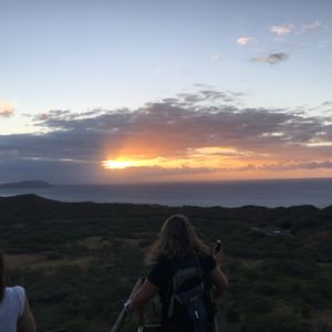 ツアーの内容にダイヤモンドの日の出とは書いてありませんが、日の出を見ることができます。ダイヤモンドヘッドの開門時間は6時なので、頂上での日の出には間に合いませんでしたが、中腹の展望台からとても綺麗な日の出を見ることができました。途中雨が降ったのですが、その代わりにとても綺麗な虹も見ることができました。階段はきつかったですが、登頂して良かったです。