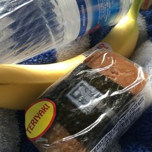 登山後は朝食としてバナナ、スパムおにぎり、シリアルバー、ミネラルウォーターがもらえました。