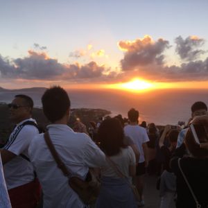 あいにく時期的な問題で、日の出を拝むことは出来ませんでしたが、登山の途中で綺麗な朝焼けを見ることが出来ました。ハナウマ湾シュノーケリングは今回4度目でしたが、透明度等も年々悪くなってきているのか、湾の状態はこれまでで一番悪く感じました。このツアーとしては、軽食付きでお得感はあると思います。