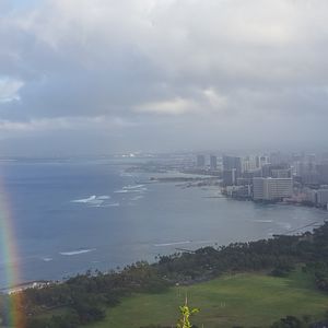 ダイヤモンドヘッドからハナウマ湾への移動中に、雨も上がり虹がかかって