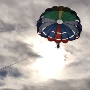 パラセイリングの乗り場で待つとボートの陽気なお兄さんたちに呼ばれ、10人乗りのボートで出発。2人ずつ順番に飛んで、また港に戻ります。港でしばらく待っていると、送りとは違うお迎えの車が来て、ホテルに10時半には帰っていました。