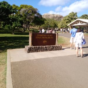 「ここがホノルルZOO、珍しい動物は何もいないよ(笑)ここがホノルルマラソンのスタート地点、みんな今回は申し込みに来たんだよね?」って感じでざっくり道中紹介しながらダイヤモンドヘッド登頂のスタート地点へ。1ドル払います。ビジターセンターは早朝は閉まっていますがトイレも自販機もあります。
