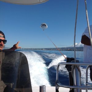 パラセーリングはとても気持ちよかったです。天気が良ければもっと良かったな。上空では、パラシュートのヒモについた海水がポタポタ落ちてきて目に入るというアクシデントもありましたが、とっても楽しめました。