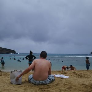 と言っても天気は曇り(笑)ハワイといえどもまだ寒かったのであまりシュノーケリング出来ませんでしたが、水はキレイで岩場には大小の魚がいるので晴れていればもっと楽しめたと思います。