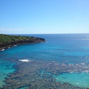 空高くから望む海やワイキキの街はとてもきれいでした