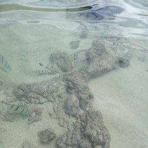 人が多く風も強かったためか、水中が結構濁っていました。でも、人気の少ないとこなら、そこそこきれいに中のお魚達の姿が見れて良かったです。浜の左奥の岩場付近にお魚が多く見れました。