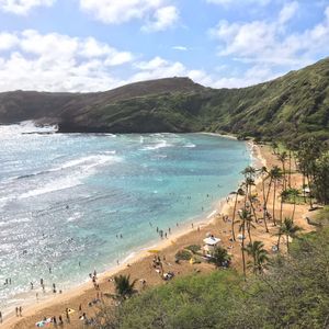 ハナウマ湾は綺麗だったが波が高くて海に入りにくかった。スパム握りとバナナとシリアルバーと水をもらったがスパム握りが温かくておいしかった。そもそも1月は天候が不順であまり太陽が出ない事を聞いた。前もって分かっていれば時期をずらして行けたなぁと事前に確認していなかった事を後悔した。全体的に天気がよければ初めてのハワイの方にはよいツアーだと思います。
