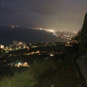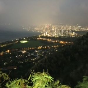 まず初めのダイヤモンドヘッドに登るものですが、ガイドさんから「30分あれば登れるので本当は一時間で帰って来れるけど一時間半あるから余裕なはず」と陽気に言われたものの、その日の日の出の時間は7時15分と予想されていたので、日の出を見ようと思うと実は集合時刻とってもぎりぎりになる、という落とし穴がありました。気をつけてください。まぁ実際にはその日は曇りで日の出は結局見れませんでしたが、ワイキキが明るくなっていく景色を見れたのは本当に良かったです!登っている時にも小雨が降っていて、真っ暗な中、しかも水溜りがある中、登らないといけなかったので、懐中電灯とウィンドブレーカーがとても役に立ちました。普通のパーカーじゃなくてよかった!