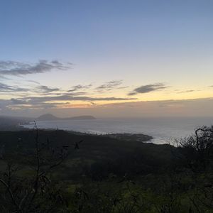 ゴツゴツした山を登り出した時は真っ暗で懐中電灯一つで登るのですが何度か休憩しながら40分程で行けました。日の出を待っていると集合に間に合わないので日の出前に下山開始。2月は東に雲がかかっていることが多く雲のない日の出を見るのは難しいらしいですが雲があってもとても感動いたしました。所々の休憩場所で写真撮影しながら下山しました。なぜ日の出を待たずして下山するのか疑問でしたがハナウマ湾が人気で制限をかけたり1時間ほど並ぶという事が起こる時があるそうです。ハナウマ湾はとても水温が低く私は入る事ができませんでしたが子供達は楽しそうに入っていました。