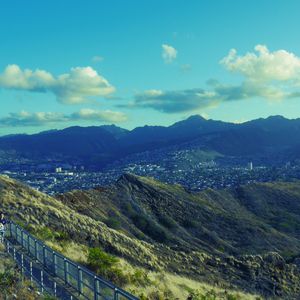 ダイアモンドヘッドから眺める街並み、海は最高でした。