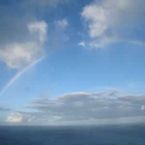 ただ、見渡す景色は陸側には朝陽が輝き、反対側は碧い海に山影が映り込み、虹が二重に架かっていて素晴らしかったです。