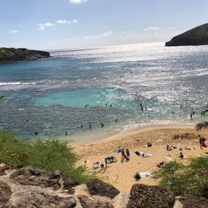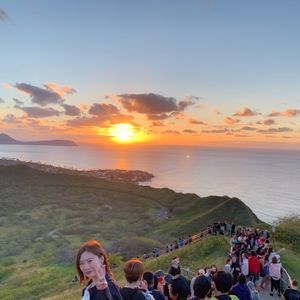 70代の母と2人での参加でした。母は、毎朝1時間半山登りをするのが日課なのでダイヤモンドヘッドはへっちゃらだったようです。私の方が最後の階段で足がつりそうになりました。でも、今回の旅行で、このダイヤモンドヘッドの日の出を観れたことが一番素敵な思い出になりました。参加して本当に良かったです。その後のハナウマベイは、その日風が強くて海水に砂がまわっているのか、あまり綺麗な海とは言えず、魚もそんなにいなくて正直夏に行った沖縄の方がずっと透明度が高いと思いました。その後、ガイドの方ができたてのマラサダを買って待っていてくださり、本当に美味しくて幸せでした!又ハワイに来たらベルトラ さんでオプションを探そうと思います。ありがとうございました。