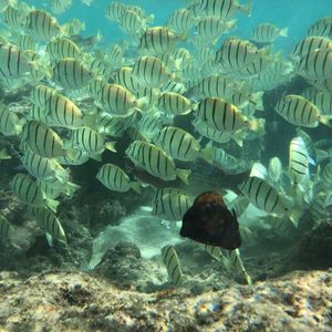 すごく綺麗な海で、浅瀬で、泳ぎに苦手の私でも、初めてお魚の群れと一緒に泳いで、すごく楽しかったです!