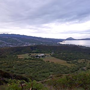 山頂までは、約30分ほどの道のりです。頂上からの眺めは、素晴らしいの一言。ほぼ360度、ホノルルの町並みや海の見晴らしは絶景で、暑い中、大汗をかきつつ登る価値は十分です。きつい道のりではないですが、頂上直前に長い階段が待っているので、覚悟していてください。