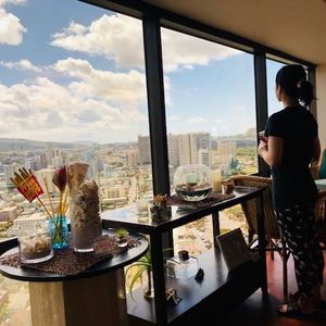アテンダントの日本人女性がハーブティーを持ってきて下さりワイキキビーチを眺めながらゆったりハーブティーを楽しみこの風景を眺めてるだけで癒されました。ハーブティーが終わる頃アテンダントの女性がaromaを3本持ってきて下さり、目をつぶりながら深呼吸しながらアロマの香りを嗅ぎ一番好きな香りを1本選びました。