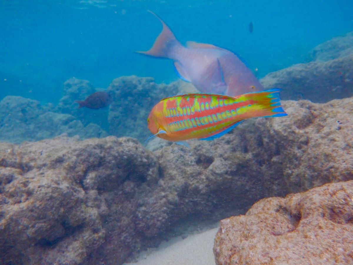 前週までの雨続きで海がまだ少し濁っていましたが、ウミガメには何頭も会えたし、水面に上がってきて息継ぎしてまた潜っていく様子もバッチリ近くで見ることができました!