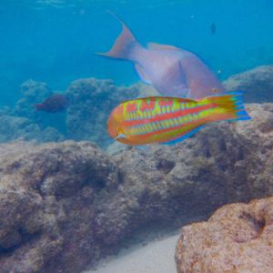 マキさんのいる所に行けば必ずウミガメも見られ満足。他にも黄色い魚や青い魚等たくさん魚がいました。