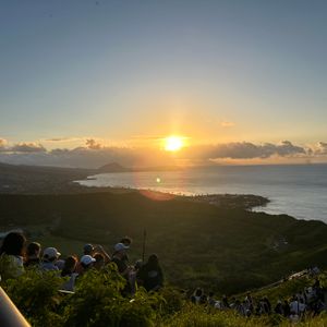 オアフ島に来ると、いつもこのツアーが気になっていました。60歳を迎えて、次に来た時登れるのか? 今回がチャンスと思い参加しました。思っていた以上に道が狭かったり、険しかったり、大勢の人が登っていたりで、今回参加して本当に良かったです。山頂に着く前に日は昇ってしまいましたが、山頂からの景色は最高でした。でも、山頂も人がいっぱいで、最前から景色を見たり、写真を取るのは一苦労でした。