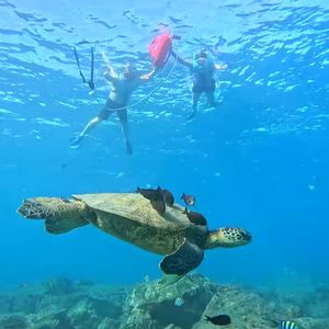 ビーチではウミガメもしっかり見ることができ、その後の自由時間では美味しいガーリックシュリンプを食べて買い物もでき大人も子どもも終始楽しめました。