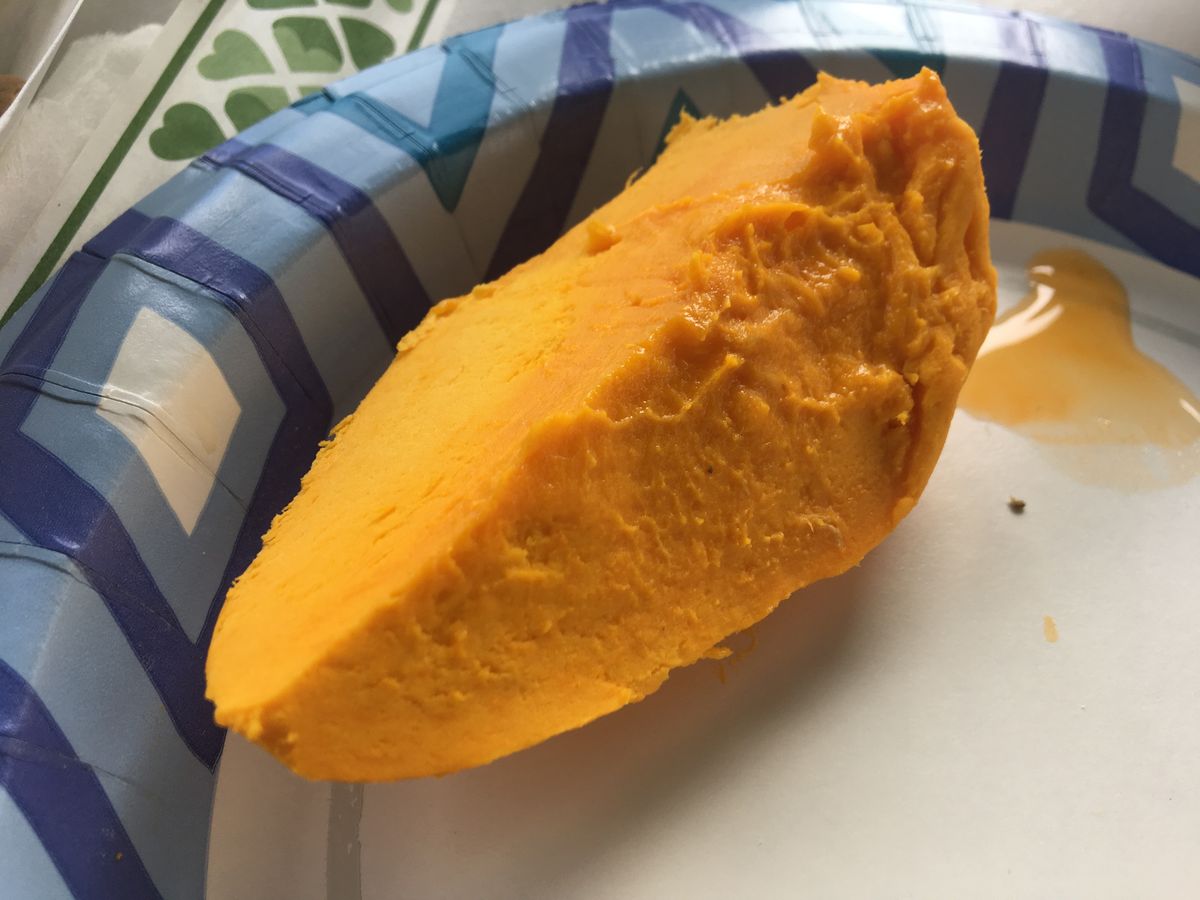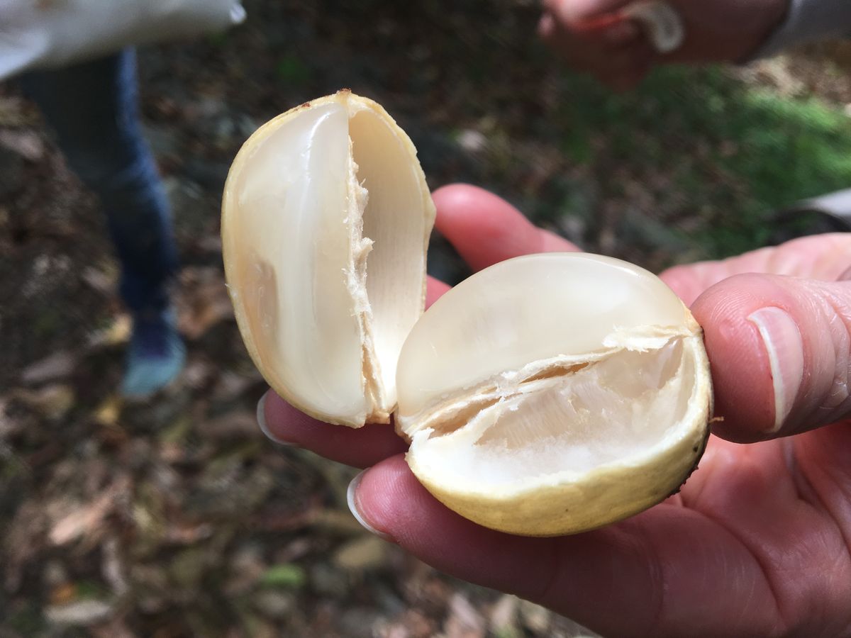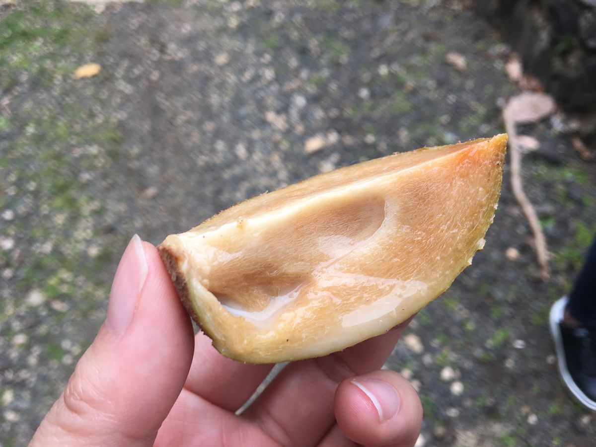 次にスターアップル。横切りすると星形の模様なので、こんなネーミング。ただ、味はリンゴではなく、柿風味。そして、白い汁が乾いてくるとガムみたいにベタつきます。ランクサットと見た目は枇杷だけど味はグレープフルーツ。フルーツでは無いけど、胡椒。一粒噛んだら、舌がしばらくピリピリします。そして、チコ。これは食べ頃の柔らかいのを探すのが大変(だけど、当たり探しみたいで、ちょっと楽しい)。味は酸味が全く無く、甘み薄めの黒砂糖という感じです。