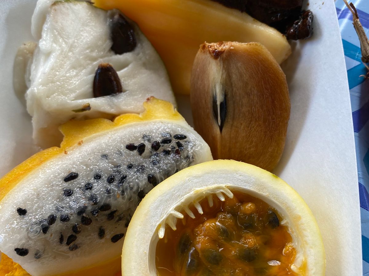 ジャングルのような果樹園を案内してもらい、途中食べられるフルーツをその場で収穫し食べさせてもらいました。ただ珍しすぎて、名前は忘れてしまいましたが、、、、