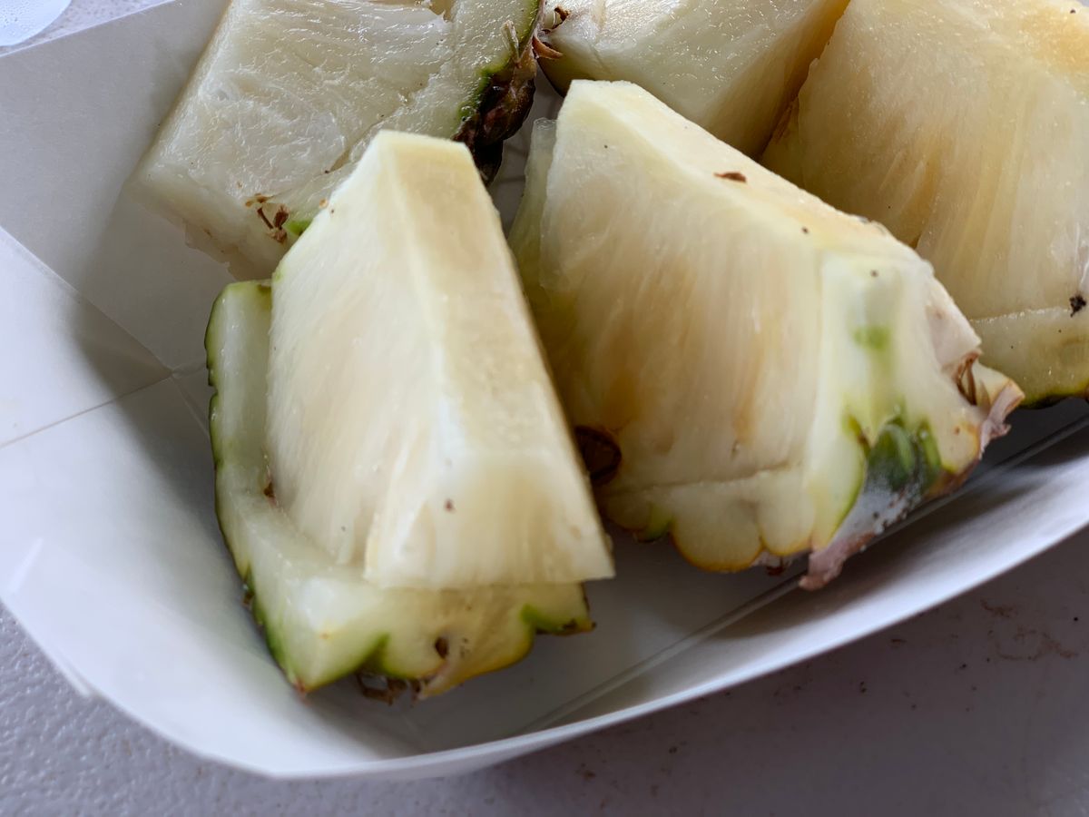 ・軽食つきが有難い。お口直しのパイナップル、スナック、チーズバーガーが配られます。酔った人にチーズバーガーは追い討ちでしたがもちろんテイクアウト用の袋もくれます。私は酔ったのでパイナップル、レモンウォーターに助けられました。