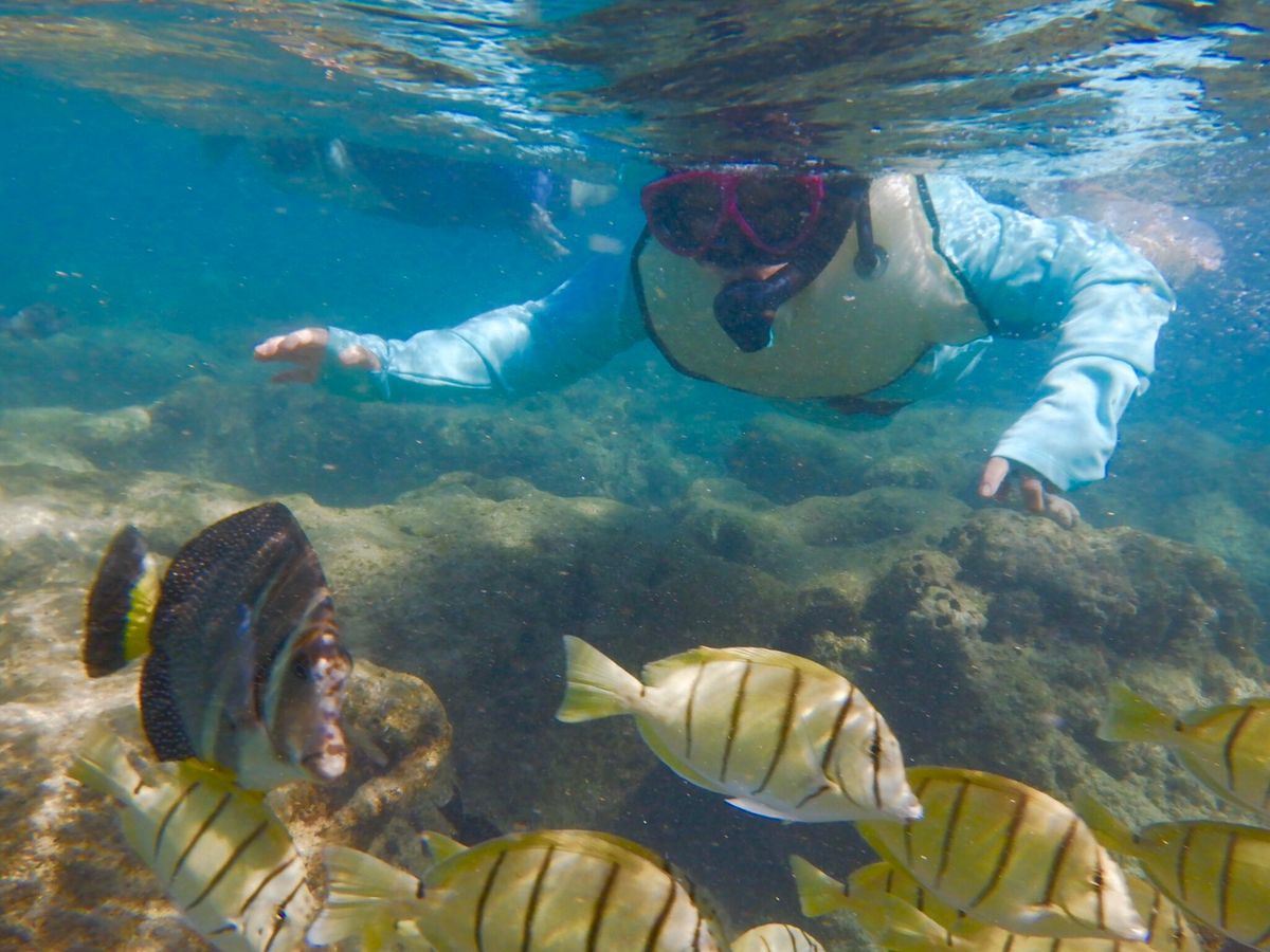 シュノーケリングでは海の中はクリアではなく濁っていました。しかし魚がたくさんいて、ホヌも近くまで来た人もいたようでみんなとても楽しんでいました。