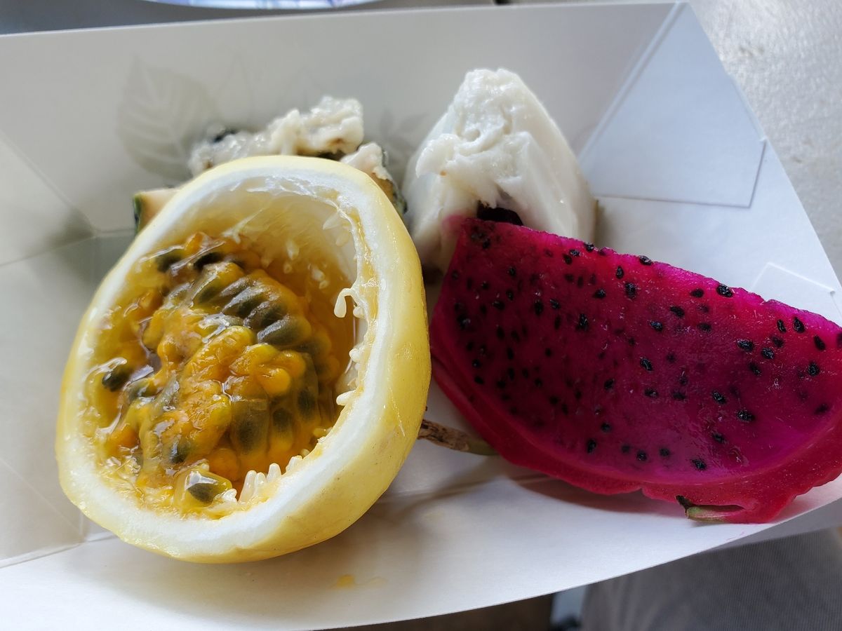 2019年10月に参加しました。以前カハラモールのホールフーズで買って食べた「ハニークリームパイナップル」が忘れられず、果樹園に行ってみたいと思い参加を決めました。ホテルまでお出迎え、ガイドは日本人の方でした。果樹園に行く前に東海岸(ハナウマ湾、ハロナ潮吹き岩展望台、マカプウ展望台)を巡ってくれます。これが絶景で良かったです。 果樹園に到着すると、1時間ほど園内を廻りつつガイドさんの説明を受けながら様々なフルーツが試食できます。その場でガイドさんが採取、切り分けてくれるスタイルです。口に合う、合わないは若干ありますが、これまでに食べたことがないフルーツ(東南アジア、中南米のフルーツ等)が味わえて楽しかったです。 それが終わると、果樹園横で冷えたフルーツやアボカド、そして「ハニークリームパイナップル」の試食があります。今回は3組と少人数だったので、ハニークリームパイナップルはもちろんですが、ドラゴンフルーツやマンゴーなどお腹いっぱいになるまで食べることができて満足でした! (フルーツのほか、お水とおにぎりもあります) 終始、ガイドさんの説明も楽しくて分かりやすく、果樹園のことのほか、最近のハワイ事情なんかも知ることができ、それも楽しめました。注意点としては、果樹園内は蚊がいっぱいいたことと、日差しがジリジリ照りつけるので、あらかじめ定められているとおり「長袖」「長ズボン」は絶対に着用した方が良いです。もちろん、靴は動きやすい靴で行きましょう。それから、今回のツアーは時間が1時間ほど延びたので、念のため、この後にすぐ予定をいれない方が無難かなと思いました。