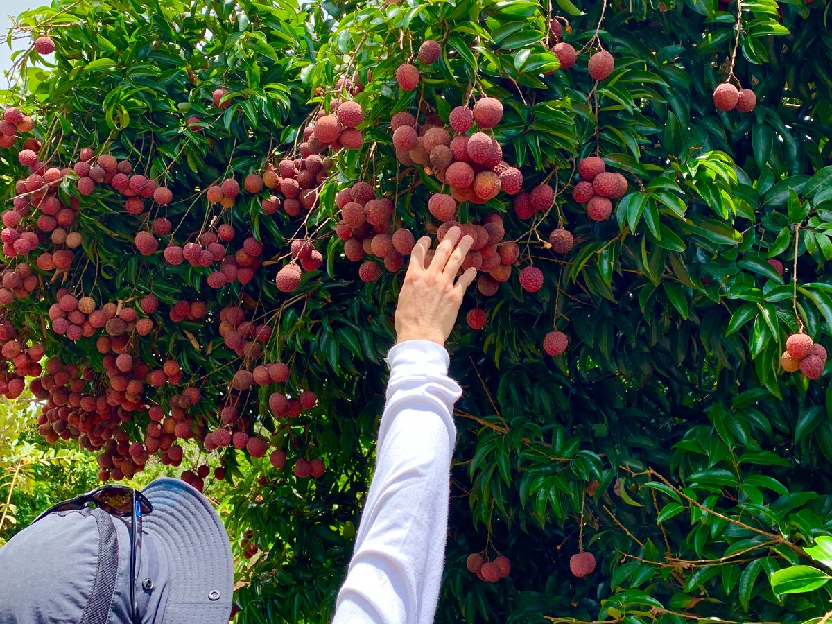 果樹園に着くと、一通り果樹園を回りながら、珍しいフルーツを頂けます。10種類以上は食べました。どれも獲れたてのためとても美味しいです。その年や時期によって、天気に左右されたりして味のバラツキはあるようです。