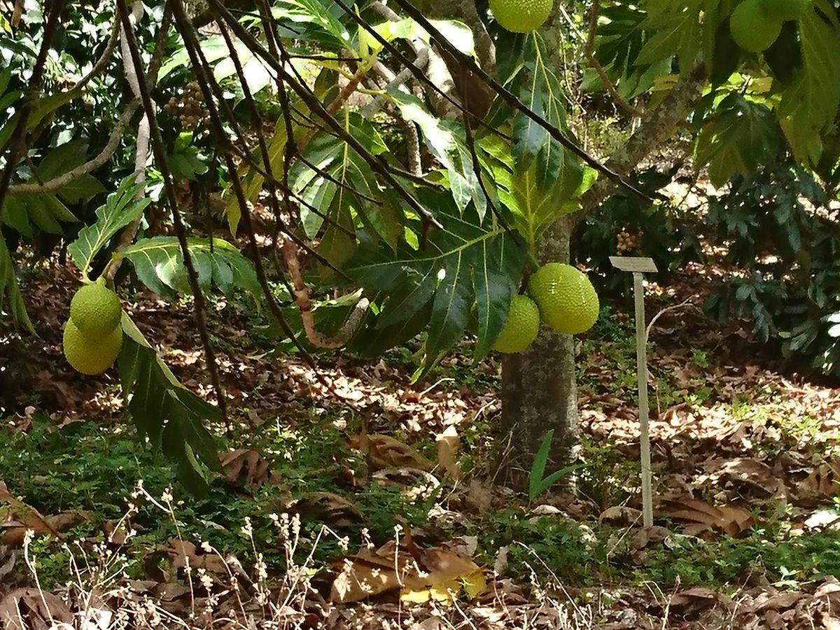 最初のマラカウア公園(この木なんの木)では、ドーナツの様なタロイモのパンを貰いました。甘くて美味しく、食べながら公園内を回れました。公園は入場料1人5ドルです。