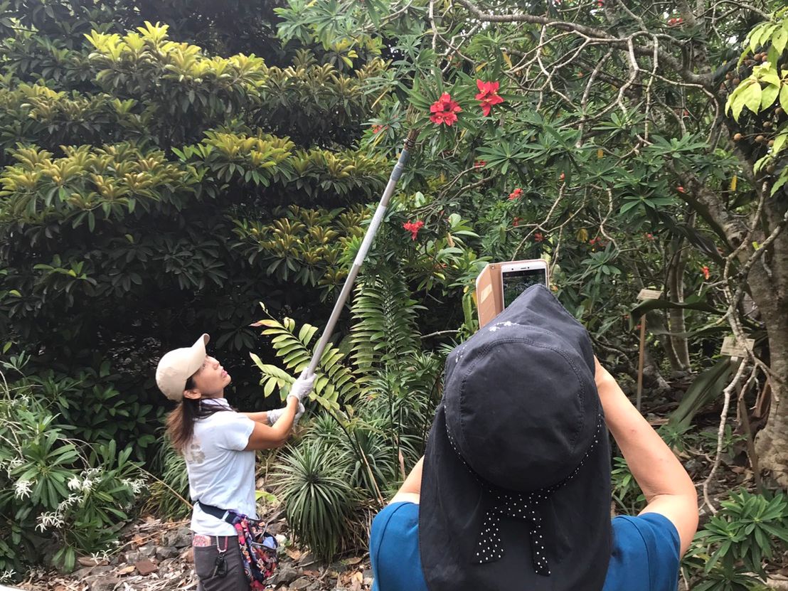 無事 場所作りを終え、2チームに分かれて 農園へ。農園は自然豊かで沢山のフルーツや花に感動し、ここでは興味深く楽しい話も沢山聞けました。