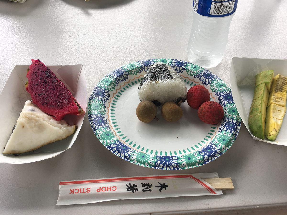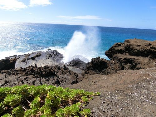 東海岸を、色々な情報を聞きながら、立ち寄り場所では写真を撮っていただきながら、とても楽しく観光ドライブをしました! 楽しみにしていたハナウマ・ベイは入場制限がかかっていたのか、入れなかったのは残念でした!フランキーズ・ナーサリーに到着し、あの有名(?)な黒いワンちゃんに出会ってから園内へ!個人的には見たことないフルーツをたくさん見て、試食をさせていただきましたが、私はライチがとても美味しかったです!この頃雨が降り始めましたが、屋根の下でゆっくりとおにぎりやフルーツをいただきました!最も楽しみにしていたハニークリームパイナップルやアボカドなどをいただきましたが、フルーツでおなか一杯になったのは初めてです(笑)ガイドさんたちも楽しくて良い1日でした!