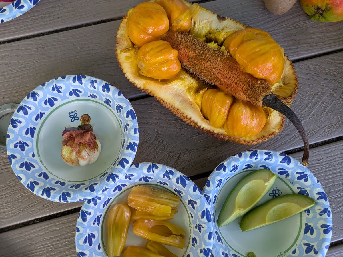 今まで 見たこともない果物の数々で、マンゴーも含めお腹いっぱいいただいた上にお土産もいただいたので、別行動していた家族も味わえて最高でした。