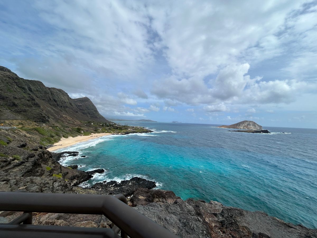 最初は整備された道ですが途中から岩道と急な階段で正直かなりきつかったですが、頂上からの景色はとてもよくザハワイって感じでした。
