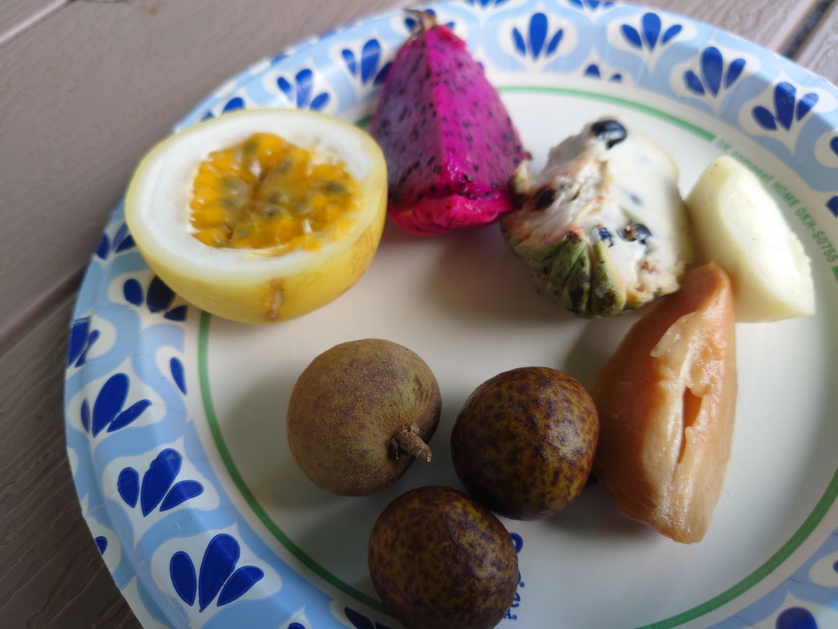 農園では約1時間フルーツを探しながら、完熟フルーツがあればその場で切っていただき食べれます。フルーツの特徴の説明を聞き知らない情報が多く勉強になりました。農園を回り終わってからは、沢山のフルーツをおなかいっぱい食べれて、食べきれないものは、お土産として持ち帰れます。