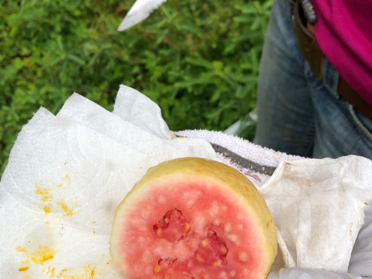 焼き芋やかぼちゃの様なフルーツ(エッグフルーツ)、グァバ、ライチ、木の枝に直接なっているジャボチカバ(ぶどうみたい)。とにかくフルーツ好きの方にはおすすめします♪キューカンバツリーと言うきゅうりに似たフルーツは激すっぱいと言われましたが、私には全然すっぱくない珍しいフルーツ。とにかく一度体験して欲しいな〜。