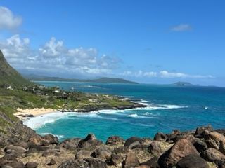 途中休んだりしながら登ること30分で、無事に山頂に到着❗360度の大パノラマに大感激❗拡がる水平線、朝日に輝くワイキキのホテル群なども見たことない角度から眺めることができました。