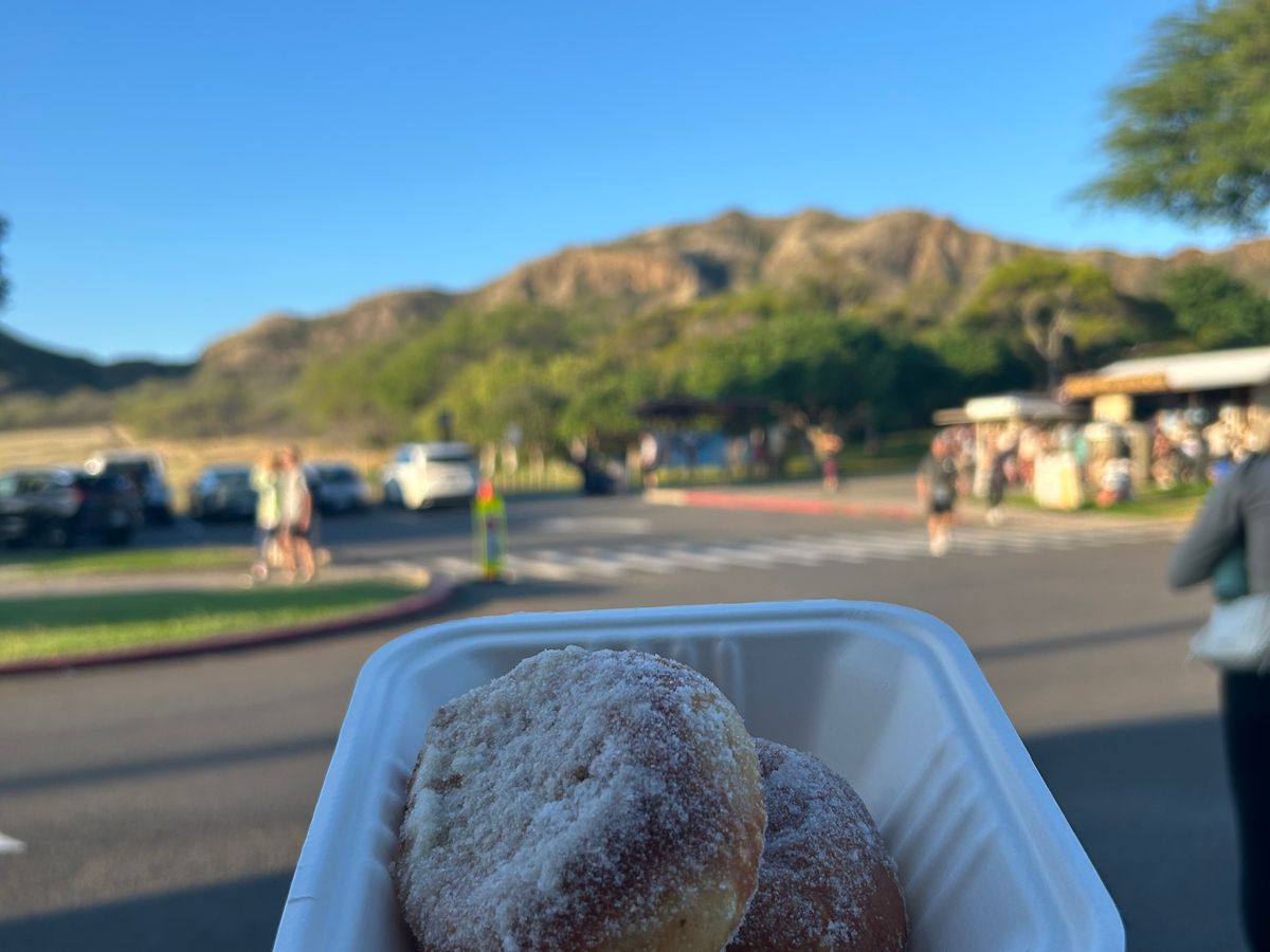 下山後は、お楽しみのマラサダをいただきました。揚げたてでふわふわ、温かくてとっても美味しかったです。