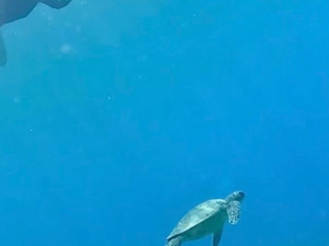海カメも魚もたくさん見れて大満足です。天気は悪かったですが海がとても綺麗でした。移動の船ではイルカも見れました。